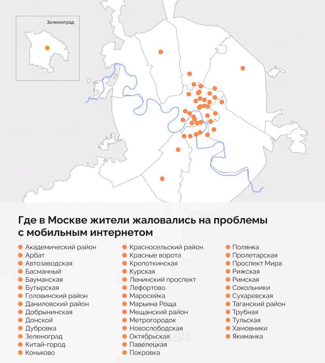 Для москвичей составили карту с проблемными зонами мобильного интернета